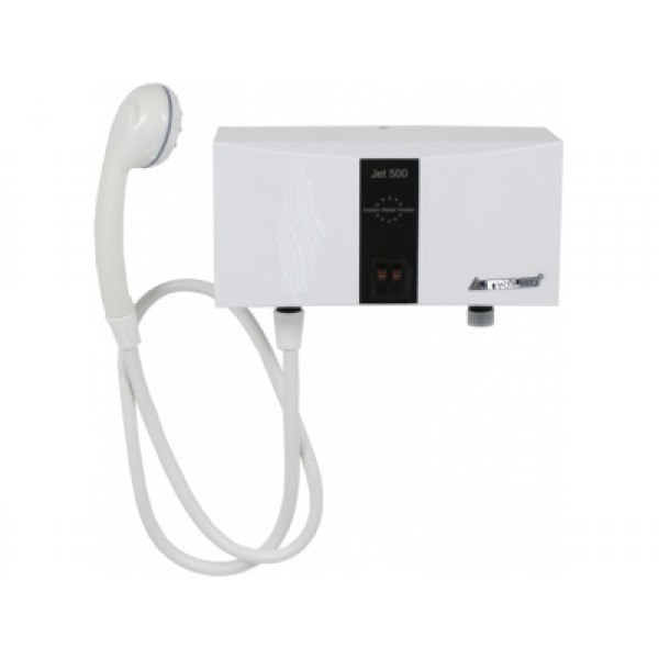 Проточный водонагреватель Etalon Jet 500 (kombi) позволяет практически сразу при включении получить теплую воду в душе или кухне (в раковине). Мембранный выключатель под давлением воды включает подачу электроэнергии, нагревательный элемент немедленно нагревает желаемое количество воды. Подключение его к электросети лучше доверить "специально обученному" мастеру с отметкой в талоне на установку, т.к. мощность прибора требует отдельной проводки с обязательным заземлением и собственного автомата защиты (в домах с электроплитами возможен упрощенный вариант подключения).