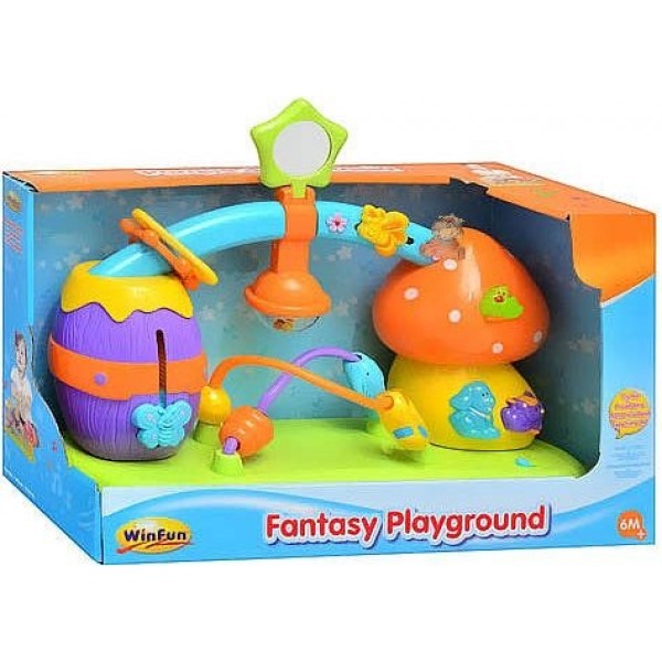 Интерактивная панель оснащена 3 кнопками с разными мелодиями, погремушкой с маленькими разноцветными шариками и зеркальцем, двигающимися фигурками и бабочка, разноцветными колечками и пчелкой.